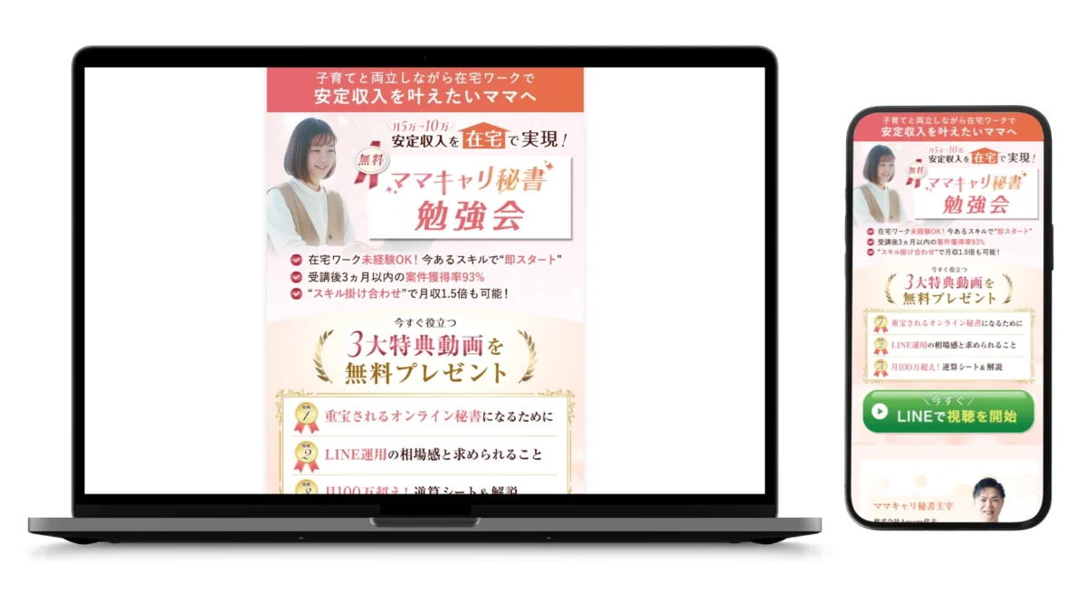 ランディングページ 【ママキャリ秘書様】オンライン秘書講座のオプトLP 事業者名いろはペン字書道教室地域東京都八王子市制作区分ランディングページジャンル趣味、実用、学び、スクール制作ツールPhotoshop 制作内容 オンライン秘書講座のオプトLP 制作時期 2025年6月 制作期間 1日 制作ポイント